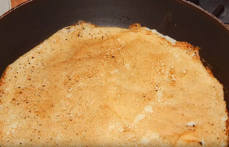 Каждый вариант способствует выпеканию дырчатых блинов. Нужно только хорошенько перемешивать тесто перед тем, как заливать его на поверхность сковороды. Блинчик должен равномерно пропекаться.