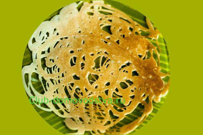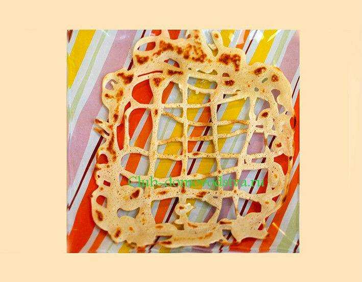 4. Переворачиваем кружевной блин очень осторожно, самой тонкой деревянной лопаткой