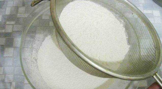 2. Следующий шаг, просейте через сито пшеничную муку, делается это для насыщения кислородом, воздушности.