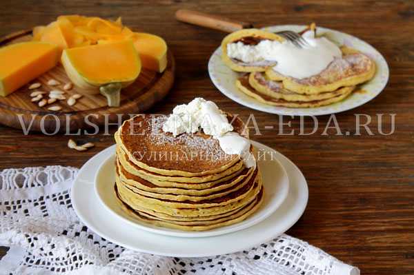 Предлагаем оригинальный вариант тыквенных панкейков, приготовленных без использования яиц.