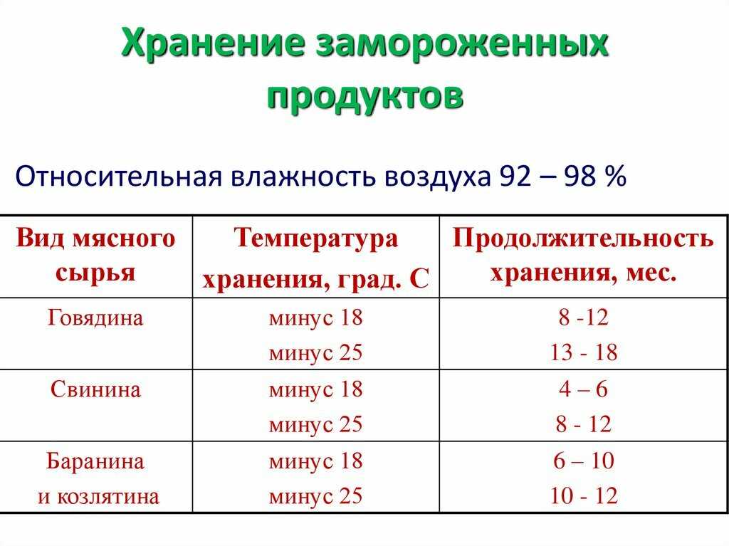 Срок хранения замороженного мяса зависит от вида мяса и температуры хранения мяса.