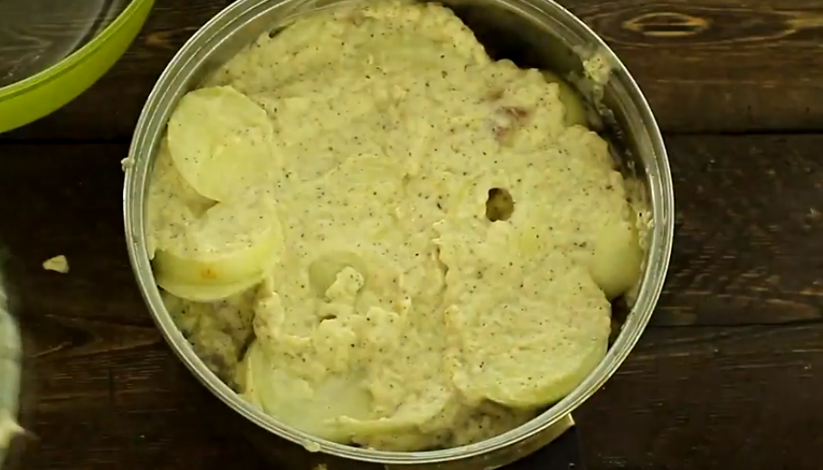 При этом каждый луково-мясной слой поливаем соком со специями. Остатки лука и маринада выкладываем на верхний слой.