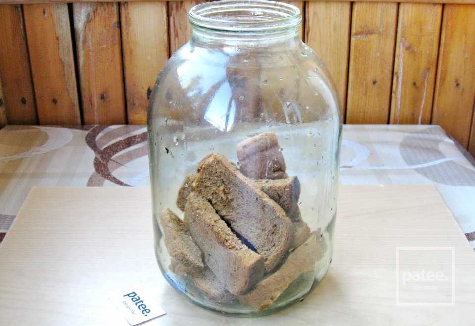 В чистую банку выложить сухари из ржаного хлеба.