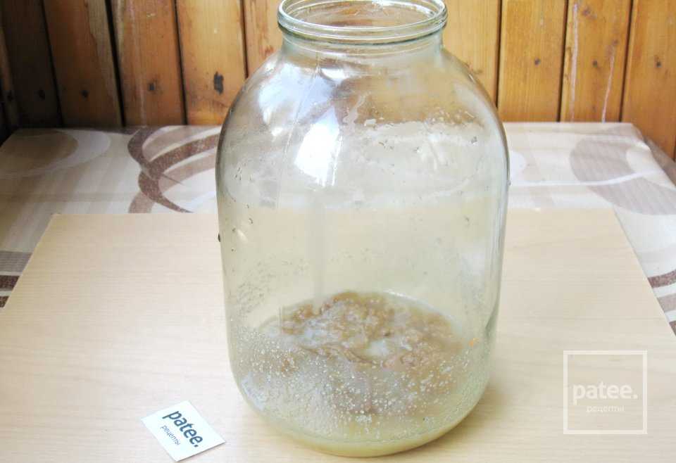 Опять налить в банку теплую воду, но не кипяток. Накрыть марлей или крышкой и опять поставить для брожения на сутки — двое.