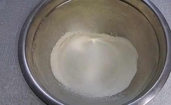 1. Начните свою кулинарную работу со смешивания сыпучих ингредиентов, возьмите сахар, соль и муку и перемешайте в миске. Не забудьте просеять муку через сито.