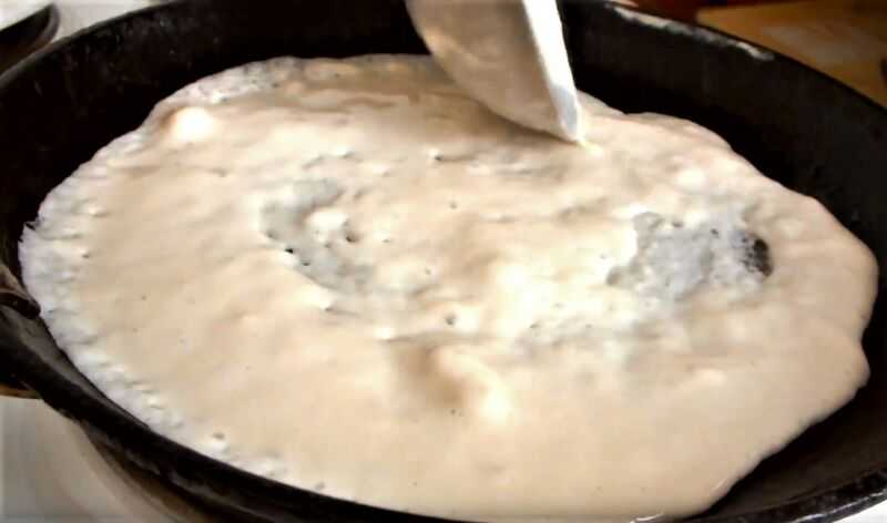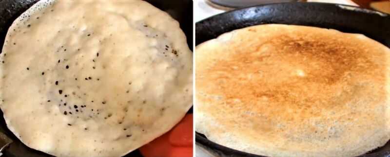 4. Выпекайте с двух сторон как обычно, сковорода должна быть раскалена и смазана маслом.