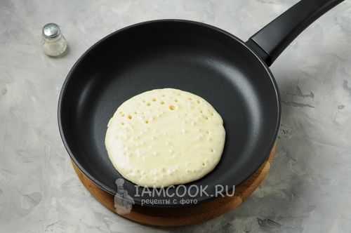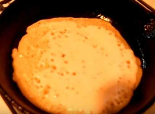 На заметку! Если у вас хорошая, качественная сковорода с керамическим либо антипригарным покрытием, то смазывать ее маслом не требуется. Ведь оно уже добавлено в тесто. Такой прием позволяет выпечке свободно отходить от сковороды.