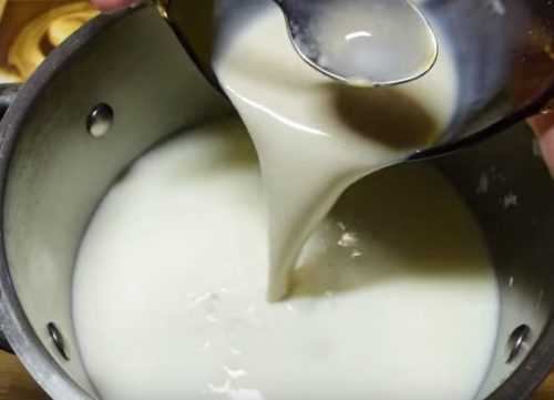 - Кислое молоко греем на небольшом огне, чтобы оно было теплым.
