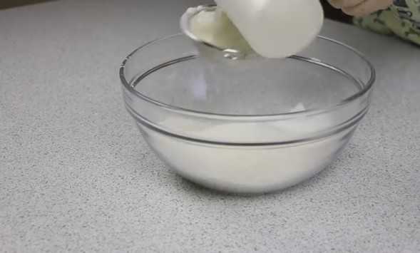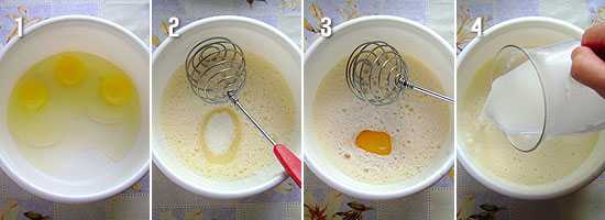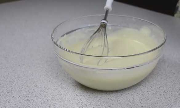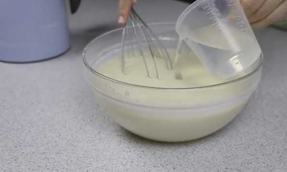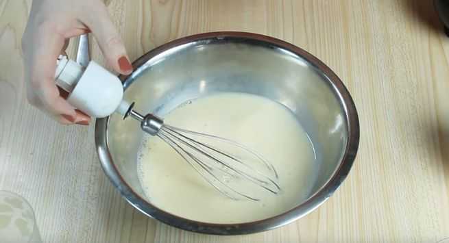 — Начинаем активно мешать венчиком или вилкой молочную смесь.