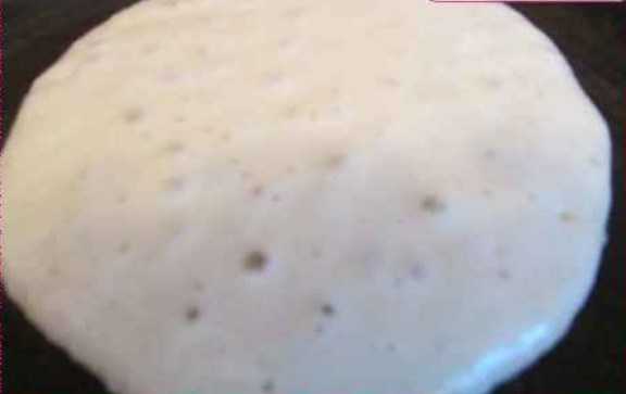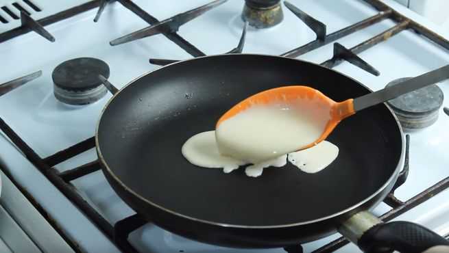 Готовое тесто выпекается на сковороде около 30 секунд с одной стороны, 15 — с другой.