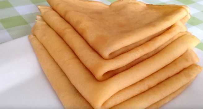 Как уже упоминалось выше, для блинчиков с начинкой берем рецепт блинов на воде.