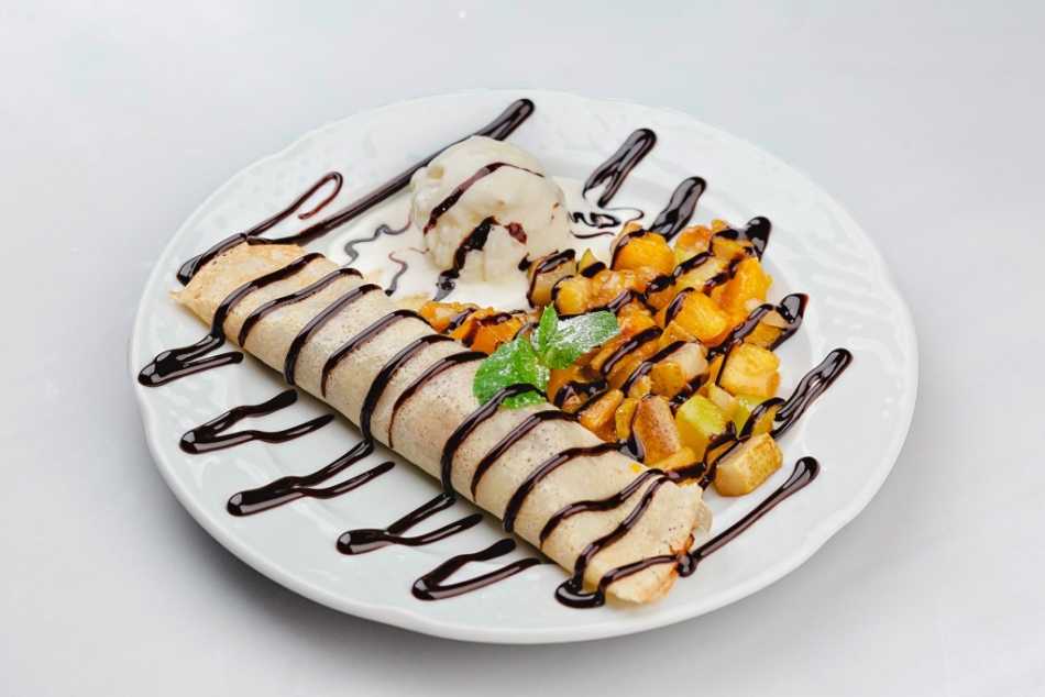Грамотно подобранная начинка сделает блинчики с шоколадом еще вкуснее. Это может быть и варенье, и мед, и творожные муссы. Хороший вариант — приготовить в качестве начинки какой-нибудь легкий крем и добавить фруктов.