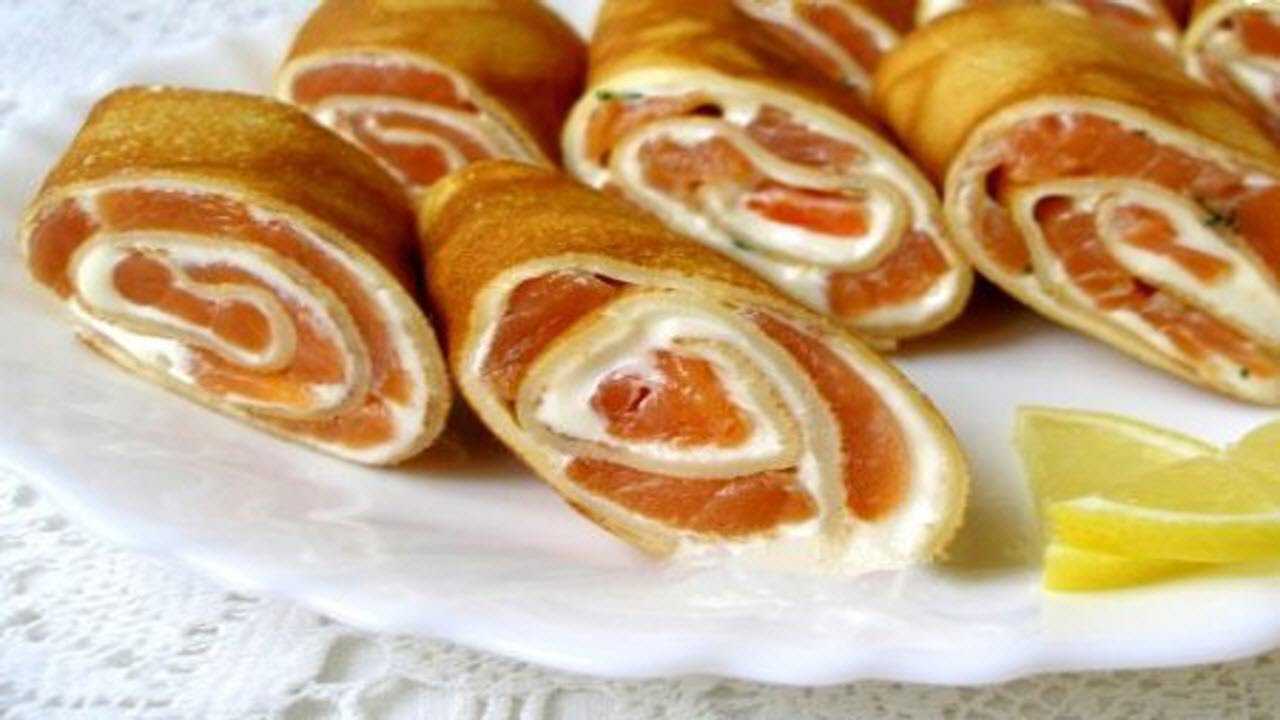Так же поступить с остальными блинами. Порезать блины на одинаковые рулеты и подавать к столу. Приятного аппетита!