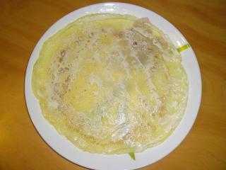 Используя предыдущий рецепт, готовим блины (1 ст.л. майонеза + 1 яйцо + ложка муки).