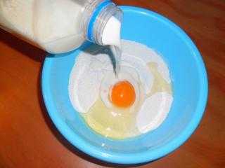 - Добавить к яйцам молоко (не холодное), еще раз взбить.