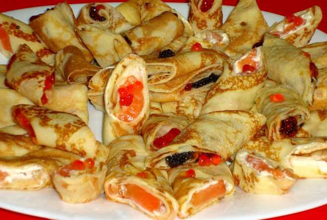 Если у вас слабые нервы, то вам лучше не браться за приготовление этих блинчиков, поскольку они очень трудно пекутся. Но тем, кого не страшит такая перспектива, рекомендуем сделать эту невероятно вкусную и нежную закуску, которая без сомнения станет главным блюдом на столе.