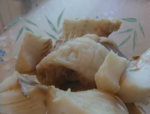 2. Мякоть нарежьте очень острым ножом на некрупные кусочки. При этом старайтесь удалять видимые мелкие косточки.