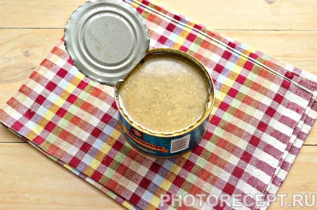 Совет: чтобы блюдо получилось нежнее, предварительно охладите консервы.