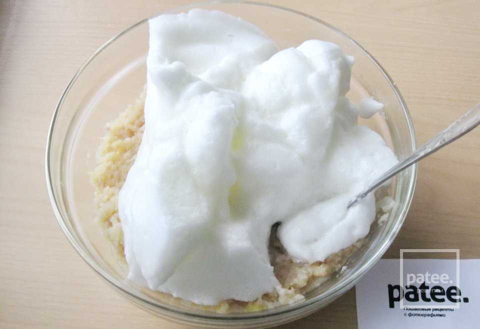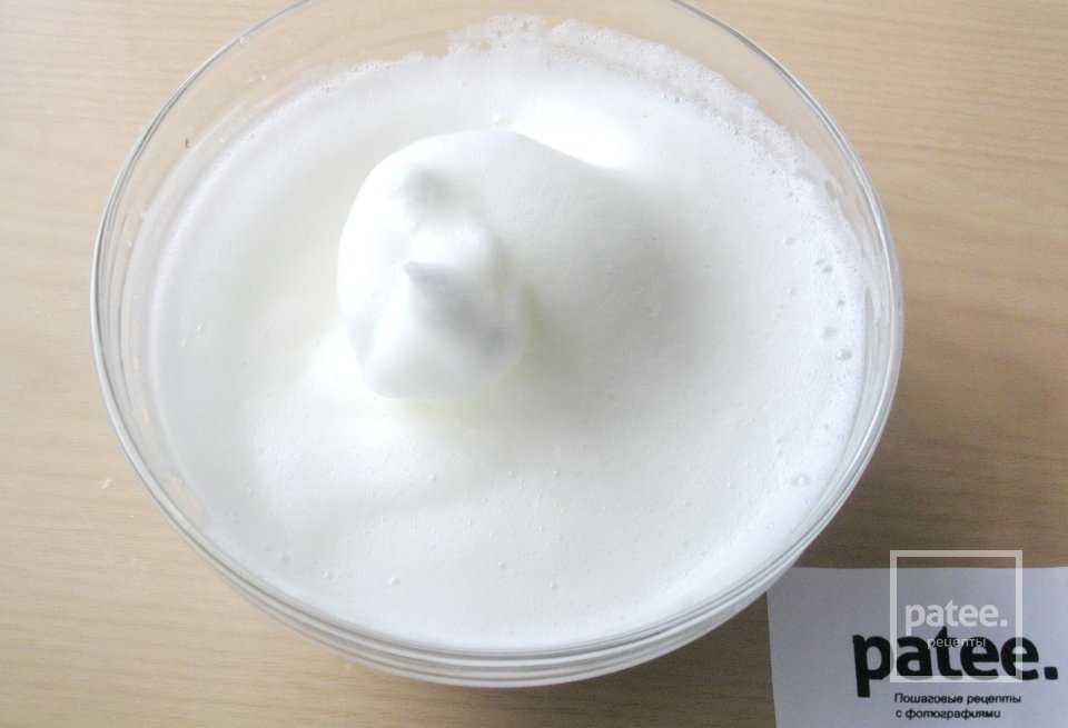 Взбиваем белки в крутую пену, добавляя сахар.