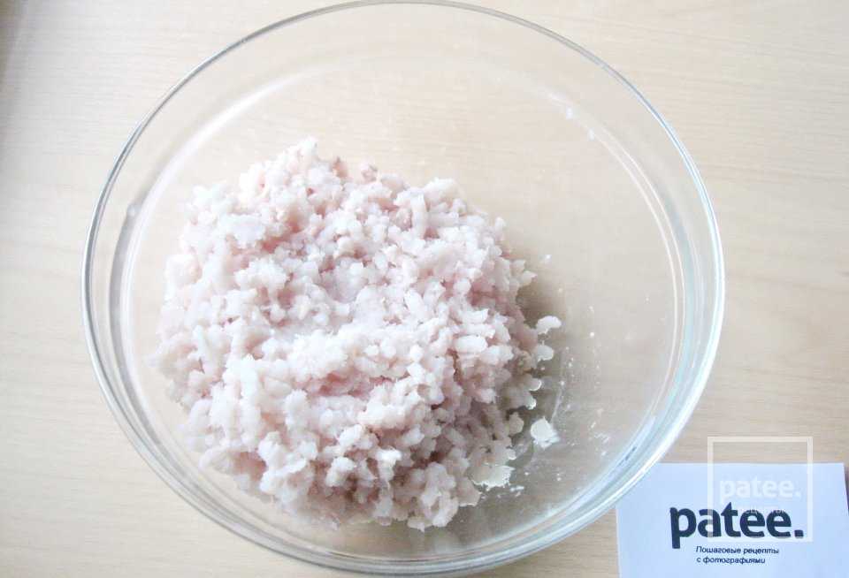 Филе белой рыбы перемалываем через мясорубку или измельчаем в блендере.