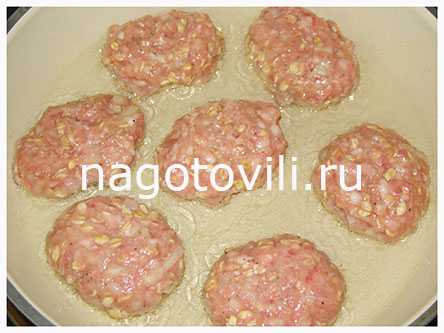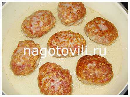 5. Согреть сковороду и масло на ней. Смочить руки прохладной водой, сформировать заготовки. Обжарить их с каждой из сторон по 8 – 10 минут. Огонь при этом должен быть средним. Когда будете обжаривать на другой стороне, то прикройте их крышкой, чтобы они хорошенько пропеклись внутри.