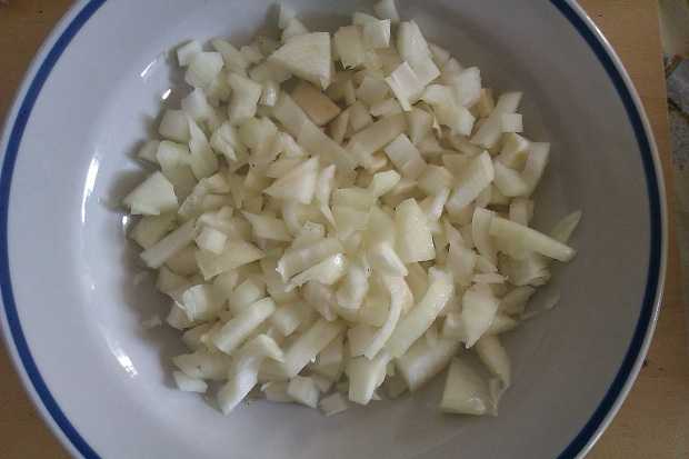 Чем мельче нарежете, тем однороднее по вкусу получатся готовые изделия, и что немаловажно – лук не будет в этом случае хрустеть на зубах