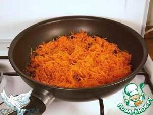 Морковь натрите на мелкой или средней терке, потушите в небольшом количестве воды ~ 0,5 стакана, 10 минут.
