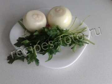 - — Пучок из зелени базилика, петрушки и других трав (можно использовать что-то одно).