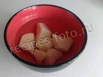 Картофель сварите в мундирах. Остудите, снимите кожуру.
