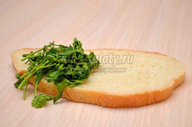 Петрушку и половину чеснока помойте, мелко нарежьте. Стебли зелени нужно отрезать, для приготовления блюда используются только листочки. Измельчите нарезанные продукты с помощью блендера.