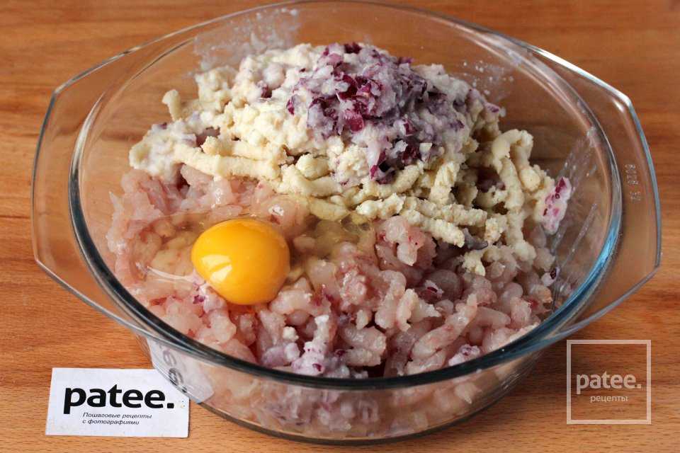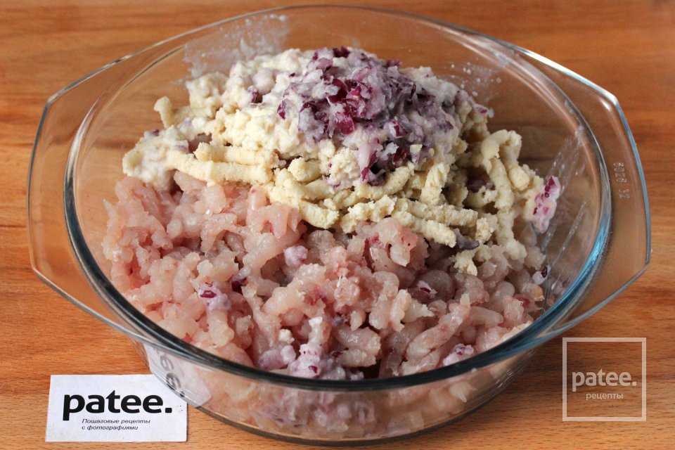 - А затем вместе с отжатым хлебом и мелко порубленным луком прокрутить мясо еще раз;
