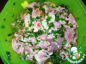 Затем мариновать еще 2 часа, добавив перец, лавровый лист, чеснок, сок лимона.