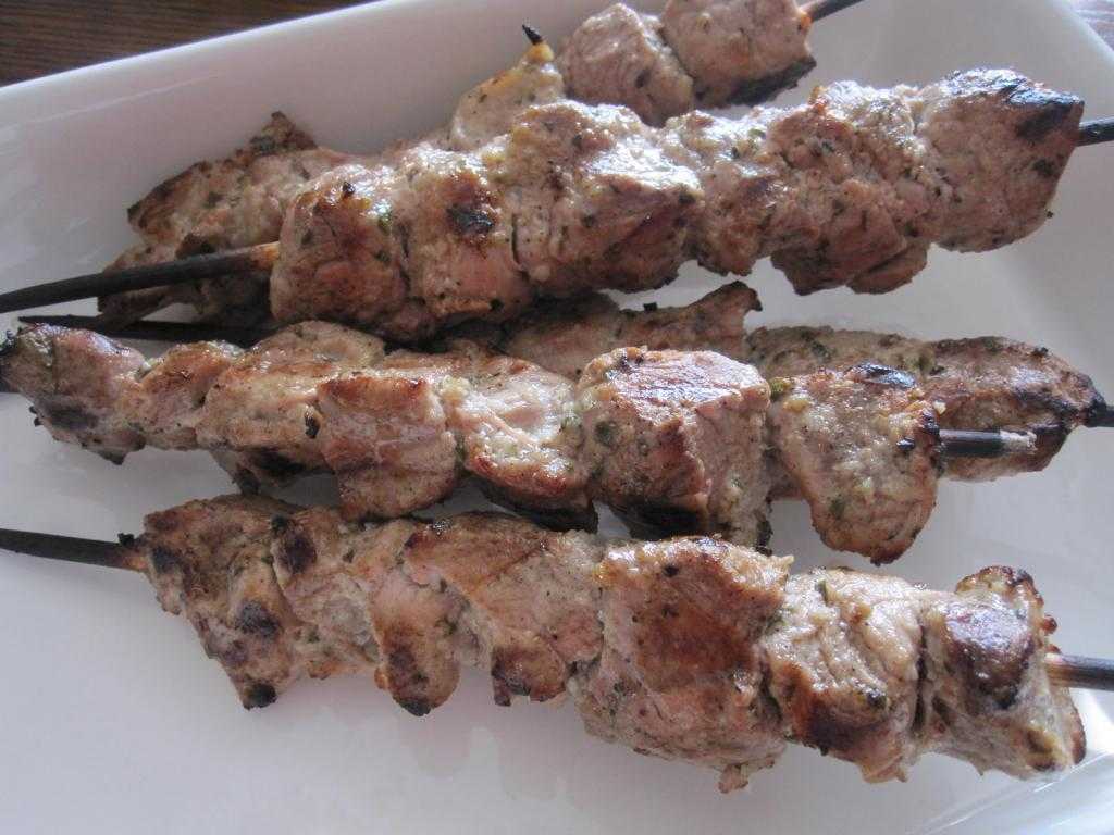 - Распределите мясо на шампуры, хорошенько разогрейте гриль. Готовьте шашлыки, переворачивая 1-2 раза в минуту, около 15 минут. Время от времени сбрызгивайте шашлыки лимонным соком.