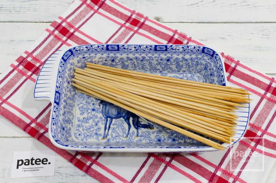 Замочить в холодной воде шпажки, нам понадобится 6 штук.