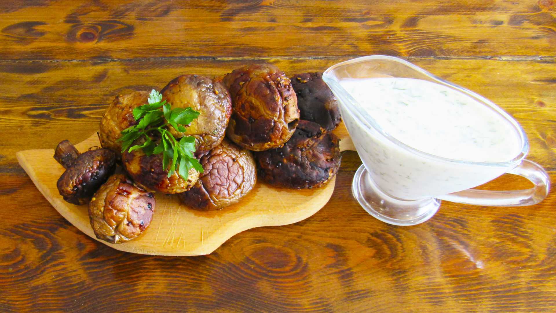 Традиционно перед приготовлением шашлыка его маринуют несколько часов или даже всю ночь. Грибы в отличие от мяса не требует долгого маринования. Достаточно получаса, а если время совсем не терпит, то и 15 минут. Маринад из сметаны и чеснока Шампиньоны, замаринованные в сметанном соусе, получаются очень нежными и сочными, а чеснок в составе маринада, подарит грибам немного остроты и пикантности. На 1 кг шампиньонов нам потребуется: