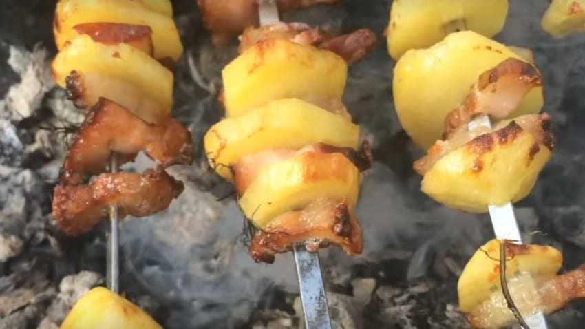 Чтобы приготовить хрустящий картофель на открытом огне, понадобится решетка и самый минимум продуктов, а шашлычок получится прекрасный.