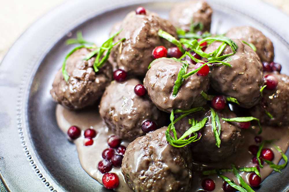 - Затем мясо вынуть, выделившийся сок заправить мукой, обжаренной на масле. Дать соусу закипеть и добавить 1 ст. л. варенья (из смородины, шиповника и т.д.), по желанию – немного сока и цедры лимона. Соус должен иметь кисло-сладкий вкус. В конце добавить изюм, орехи, пряности. Подавать соус к тушеному мясу в отдельной посуде.