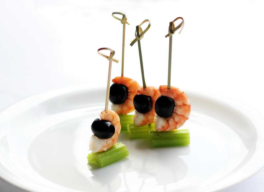 Канапе с креветками на шпажках