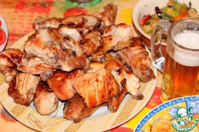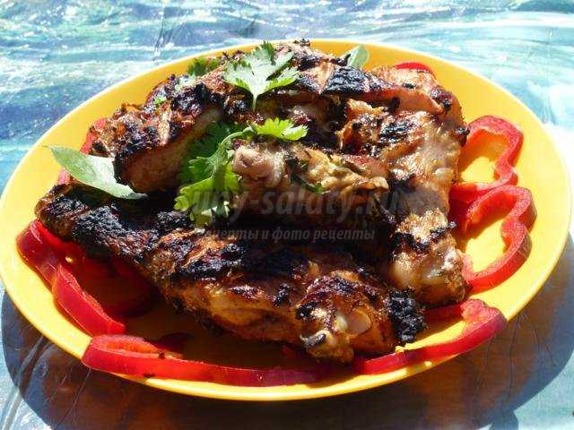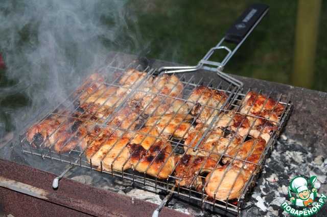- Оставить курицу мариноваться на 1,5–2 часа, после чего зажарить на мангале.