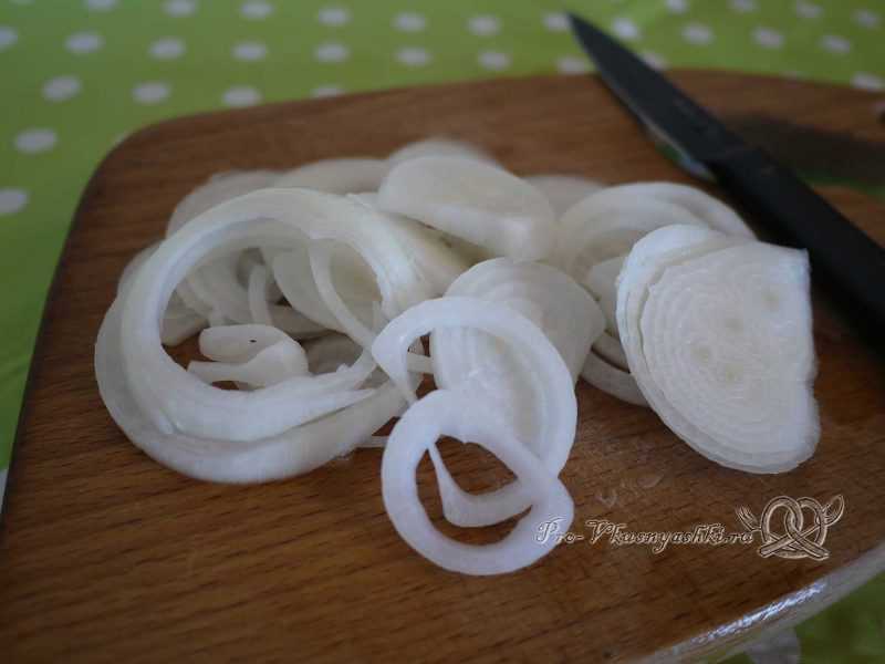 3. Репчатый лук нарезаем крупными кольцами, толщиной 7 мм.