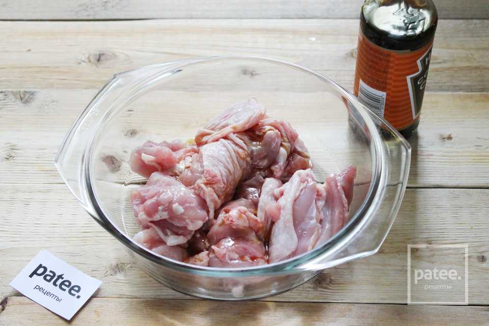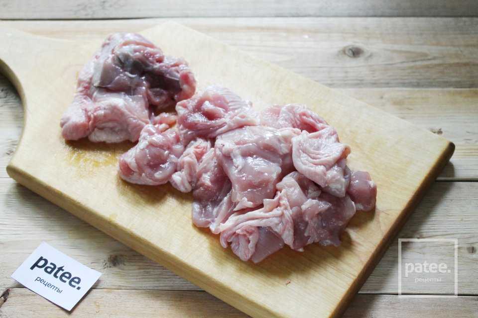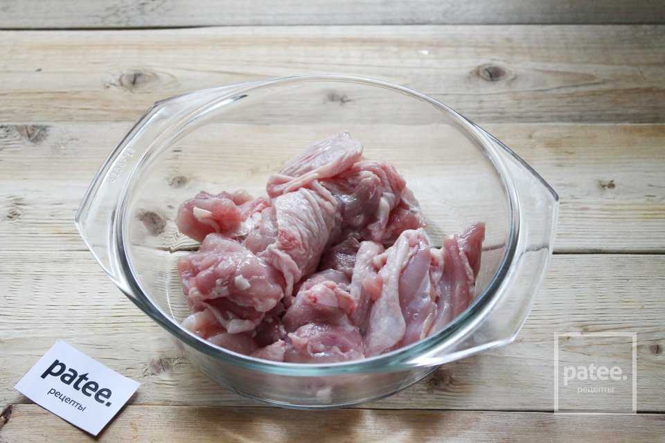 Мясо снимите с косточек (можно порубить вместе с косточками, если любите такой вариант), нарежьте кусочками.