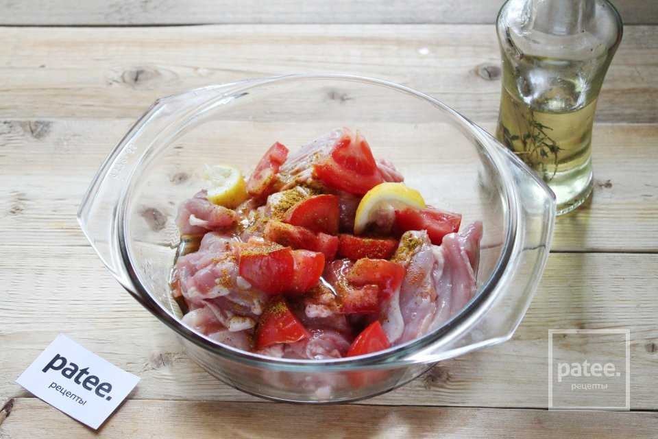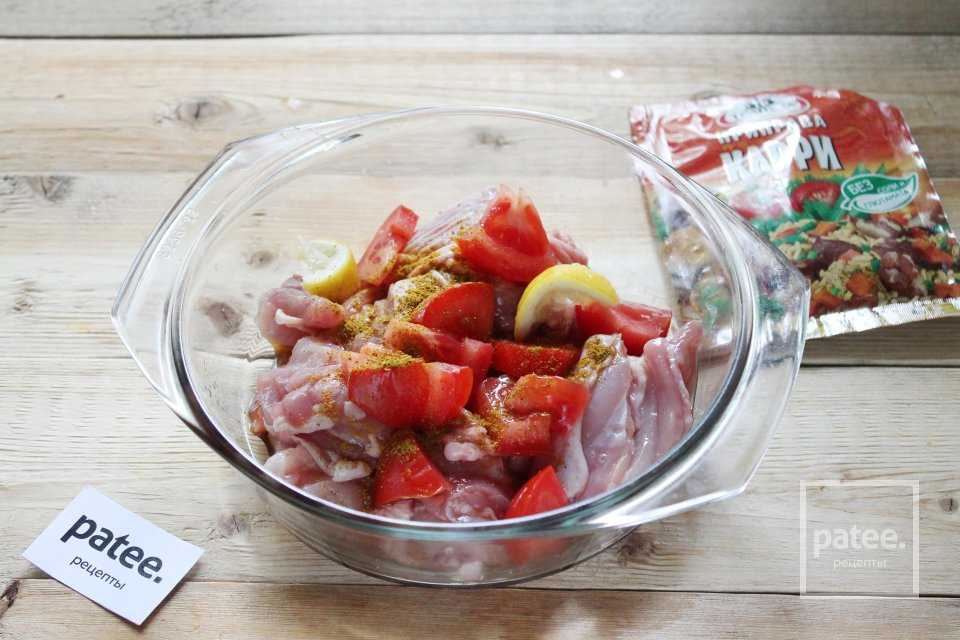 Для приготовления шашлыка из курицы в банке в духовке возьмите куриное мясо — лучше красное, сладкий перец, помидор, для маринада: лимонный сок, соевый соус, карри, паприку, подсолнечное масло.