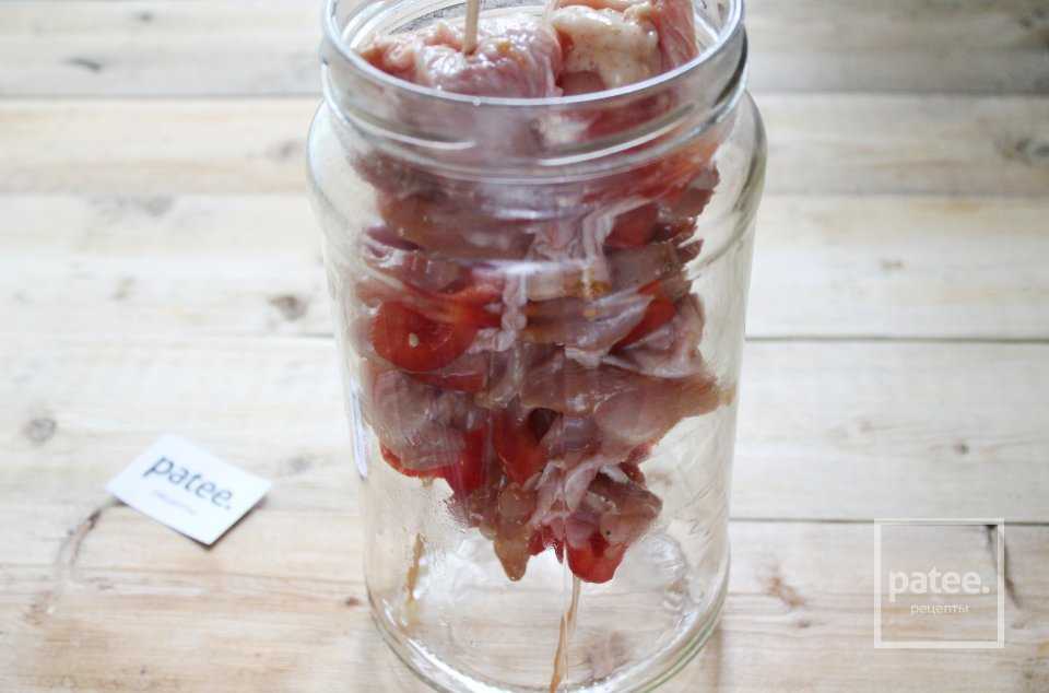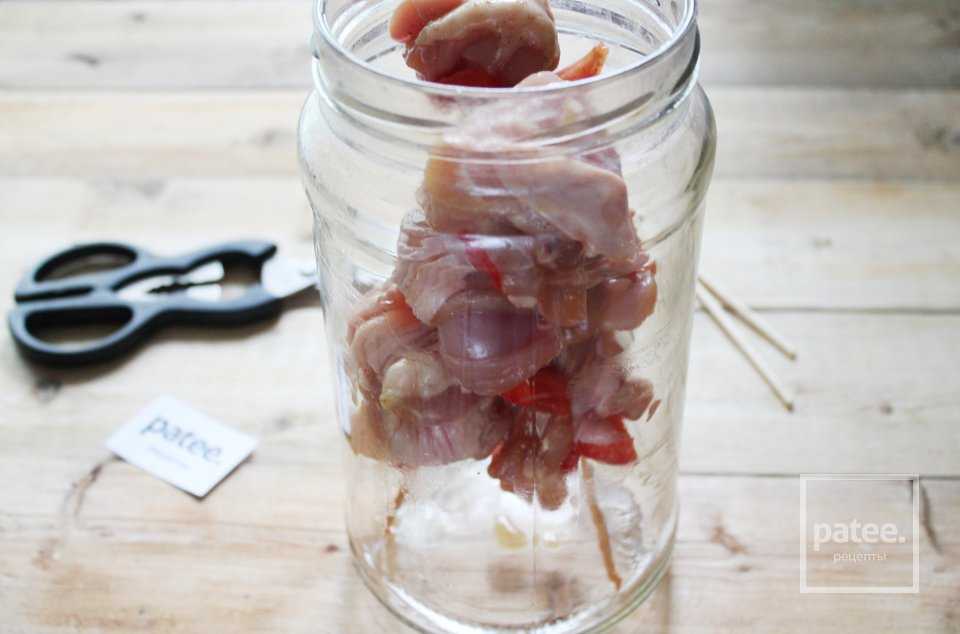 Описание рецепта — Шашлык из куриных бедрышек в духовке в банке: