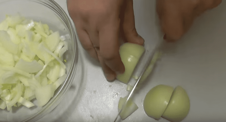 - Чистим и мелко измельчаем лук (на блендере или терке).