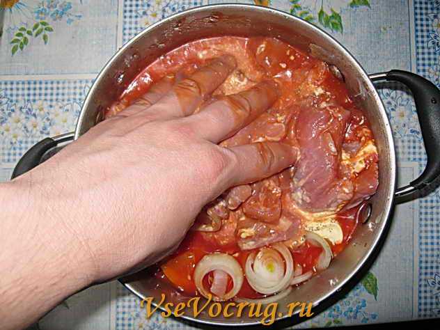 - На килограмм мяса потребуется ровно такое же количество лука.