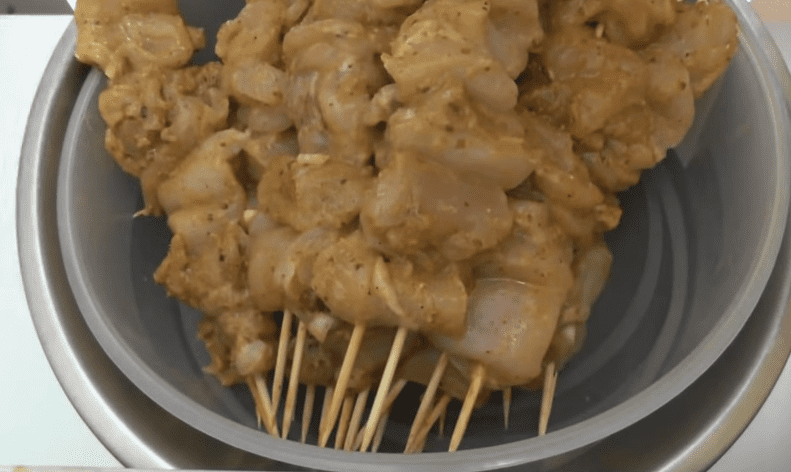 - Включить и прогреть духовой шкаф до 200 градусов, за это время шашлычки промаринуются.