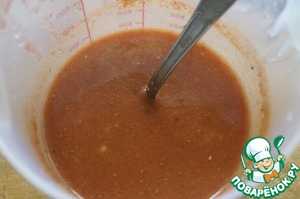 1. Для приготовления маринада соединяем и тщательно перемешиваем все ингредиенты. Чеснок добавляется в маринад после пропускания через чеснокодавку.