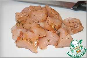 Теперь разрежем грудку на кусочки для небольших шашлычков.