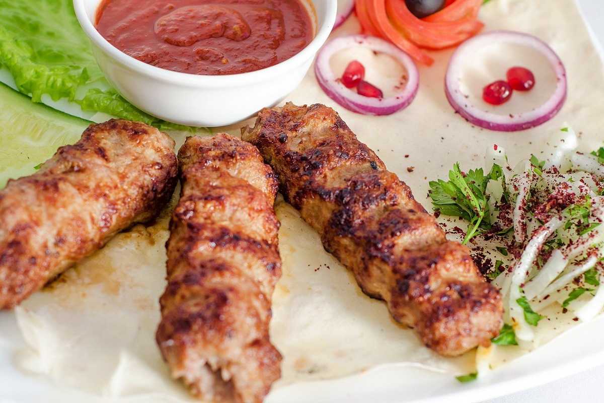 В арабской кухне кебабы часто сопровождаются свежей зеленью и заворачиваются в тонкий армянский лаваш.