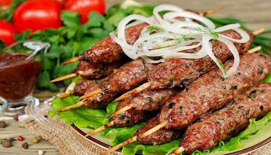 В фарш для кебабов никогда не кладут хлеб и яйца. Только лук, соль и молотый черный перец. Некоторые народы добавляют для аромата зелень. Азербайджанцы и другие жители Кавказа – базилик, мяту и кинзу, узбеки – кориандр, зиру, паприку, молдаване – красный молотый перец, чеснок